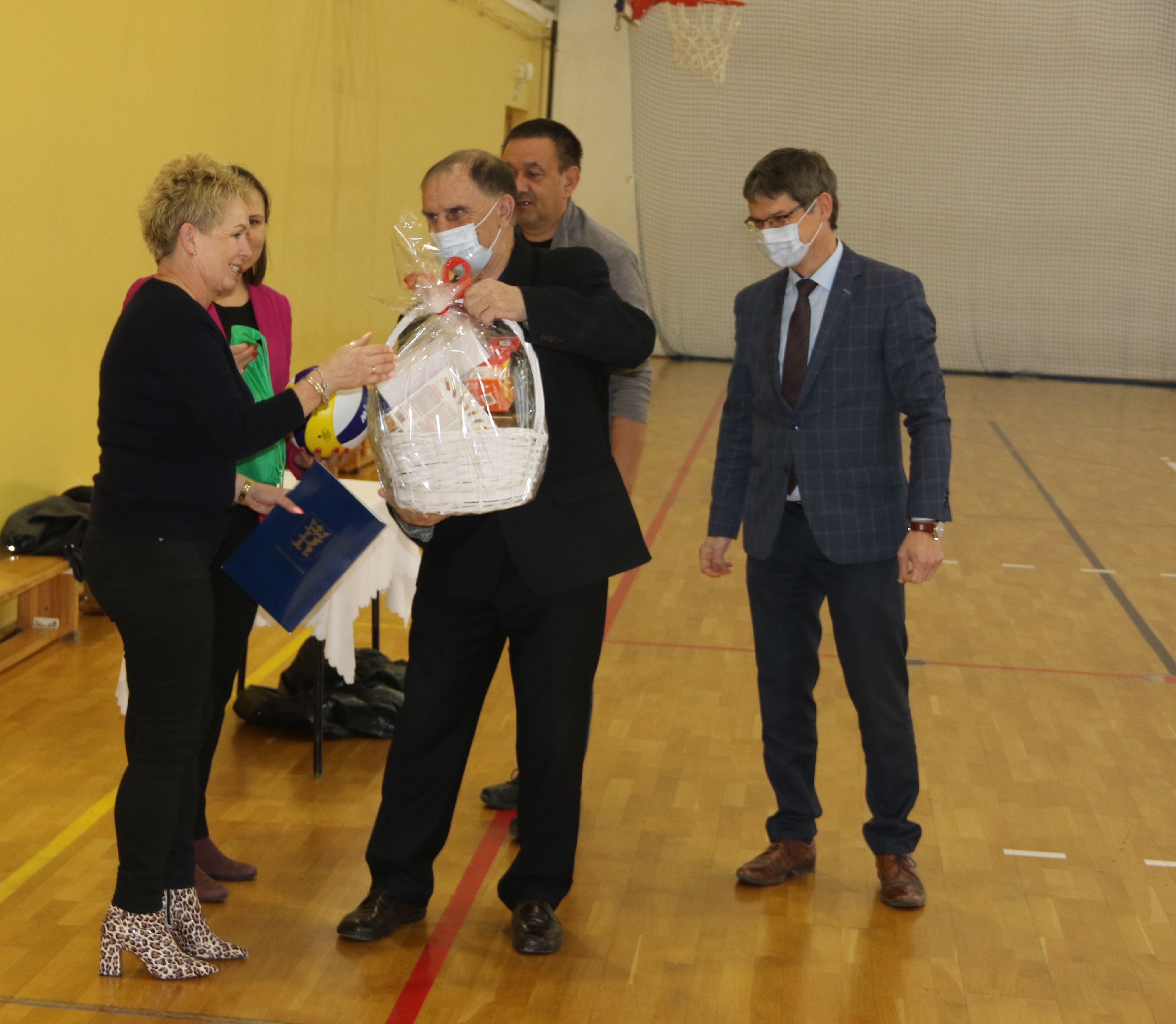 Wczoraj, w hali sportowej w Tymbarku, Wójt Gminy Tymbark Paweł Ptaszek, przewodniczący komisji oświaty, kultury, zdrowia i spraw socjalnych Rady Gminy Tymbark Krzysztof Wiśniowski oraz wicedyrektor Szkoły Podstawowej w Tymbarku Beata Pachowicz wręczyli nagrody rzeczowe i listy gratulacyjne osobom, które zajęły I miejsce w eliminacjach powiatowych i II w półfinałach wojewódzkich halowej piłki nożnej (rocznik 2007-2008) oraz mistrzostwach wojewódzkich w zawodach lekkoatletycznych (biegu na 100 m i sztafecie 4 x 100 m).