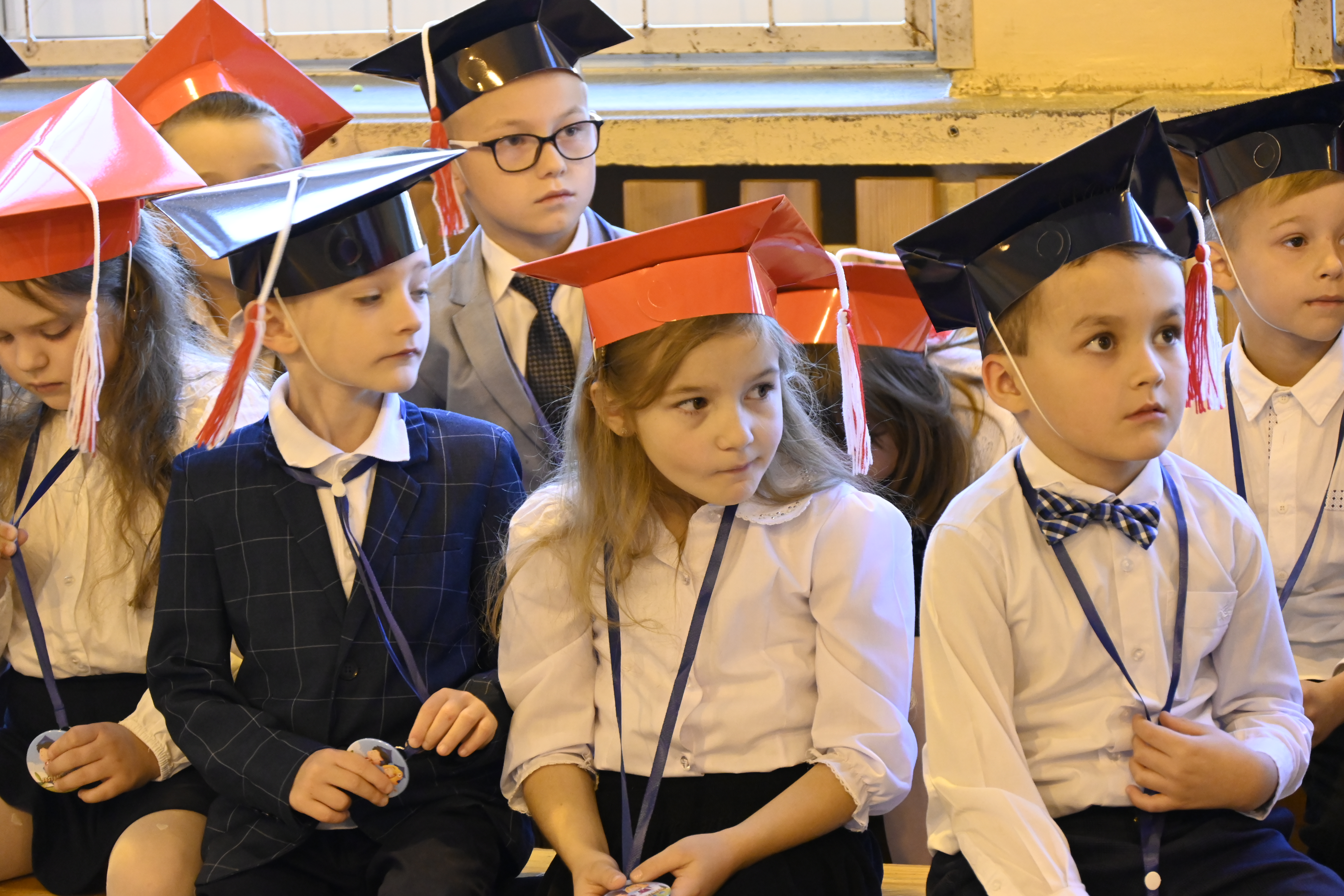 W niezwykle podniosłej atmosferze, przed pocztem sztandarowym, rodzicami oraz dyrekcją, uczniowie klas pierwszych uroczyście złożyli przysięgę ślubowania, a następnie pani dyrektor Beata Pachowicz dokonała symbolicznego pasowania na ucznia, dotykając ramion dzieci ogromnym ołówkiem ufundowanym przez Radę Rodziców. Od tej chwili pierwszoklasiści dołączyli do grona społeczności uczniowskiej Szkoły Podstawowej w Tymbarku. Każdy uczeń otrzymał również pamiątkowy medal, założony osobiście przez wicedyrektora Tomasza Zielińskiego. Do tej wyjątkowej chwili uczniowie sumiennie przygotowywali się pod okiem swoich wychowawczyń ,wytrwale ćwicząc kroki i układy poloneza, którym rozpoczęli uroczystość. W efekcie przed zaproszonymi gośćmi: rodzicami, nauczycielami, dyrekcją, zaprezentowali się wyśmienicie. Trudno było ukryć wzruszenie i dumę. Na zakończenie dzieci otrzymały prezenty ufundowane przez Radę Rodziców. Wykonano klasowe zdjęcia pamiątkowe, a po spotkaniu w klasach i wręczeniu dyplomów oraz upominków przygotowanych przez rodziców, nadszedł czas na indywidualne zdjęcia. Z pewnością ten dzień na długo pozostanie w pamięci każdego pierwszoklasisty.