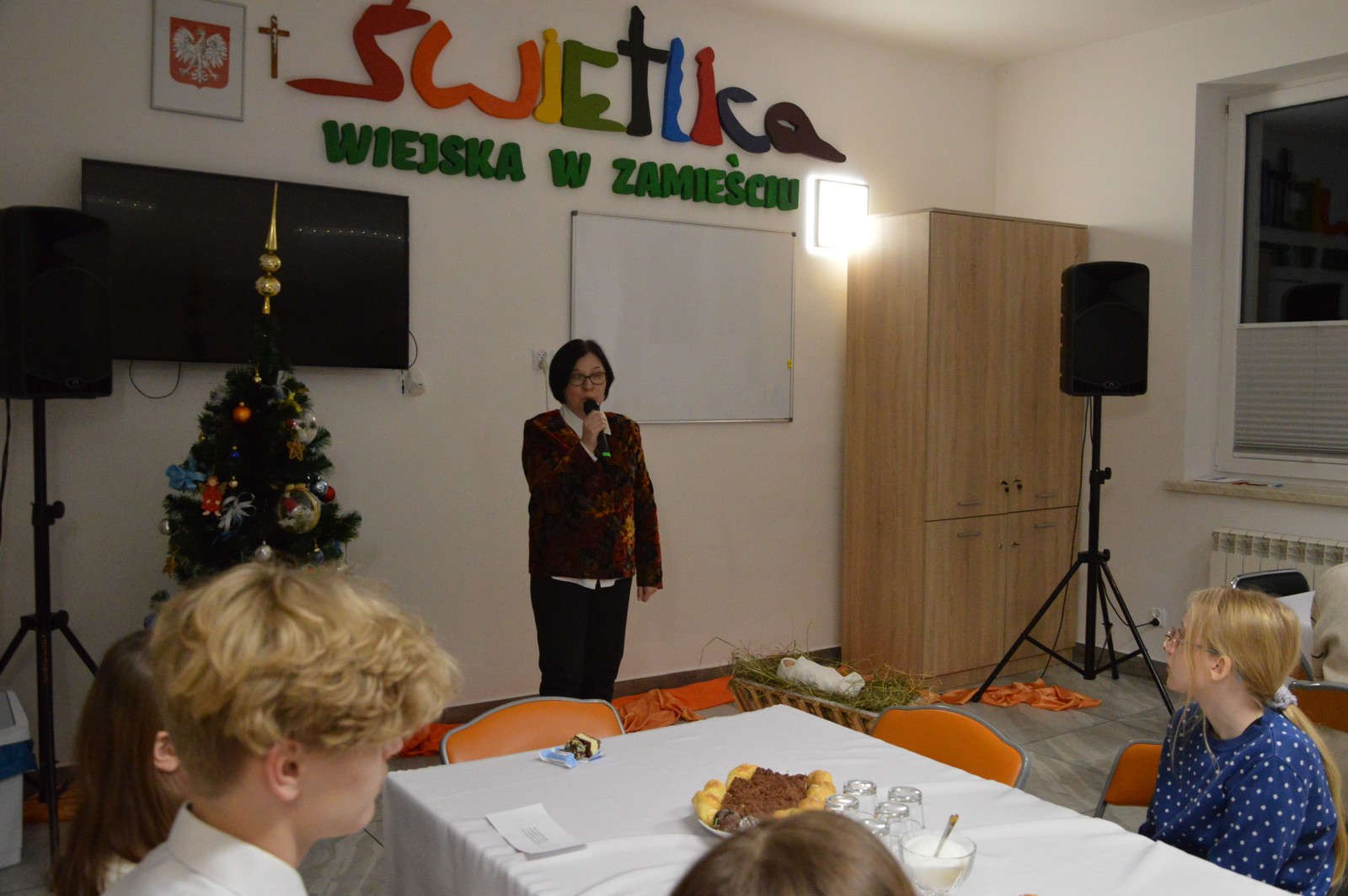 W piątek 16 grudnia, tradycyjnie jak co roku, w Świetlicy wiejskiej w Zamieściu odbyło się uroczyste spotkanie wigilijne. Uczestnicy zajęć świetlicowych na dzisiejszą uroczystość przygotowały świąteczne dekoracje: choinkę, sianko i żłóbek. Przy wigilijnym stole wraz z dziećmi, rodzicami, mieszkańcami sołectwa zasiedli: wójt Paweł Ptaszek z rodziną, przedstawiciele Rady Sołeckiej, panie z KGW w Zamieściu oraz kierownik biblioteki.