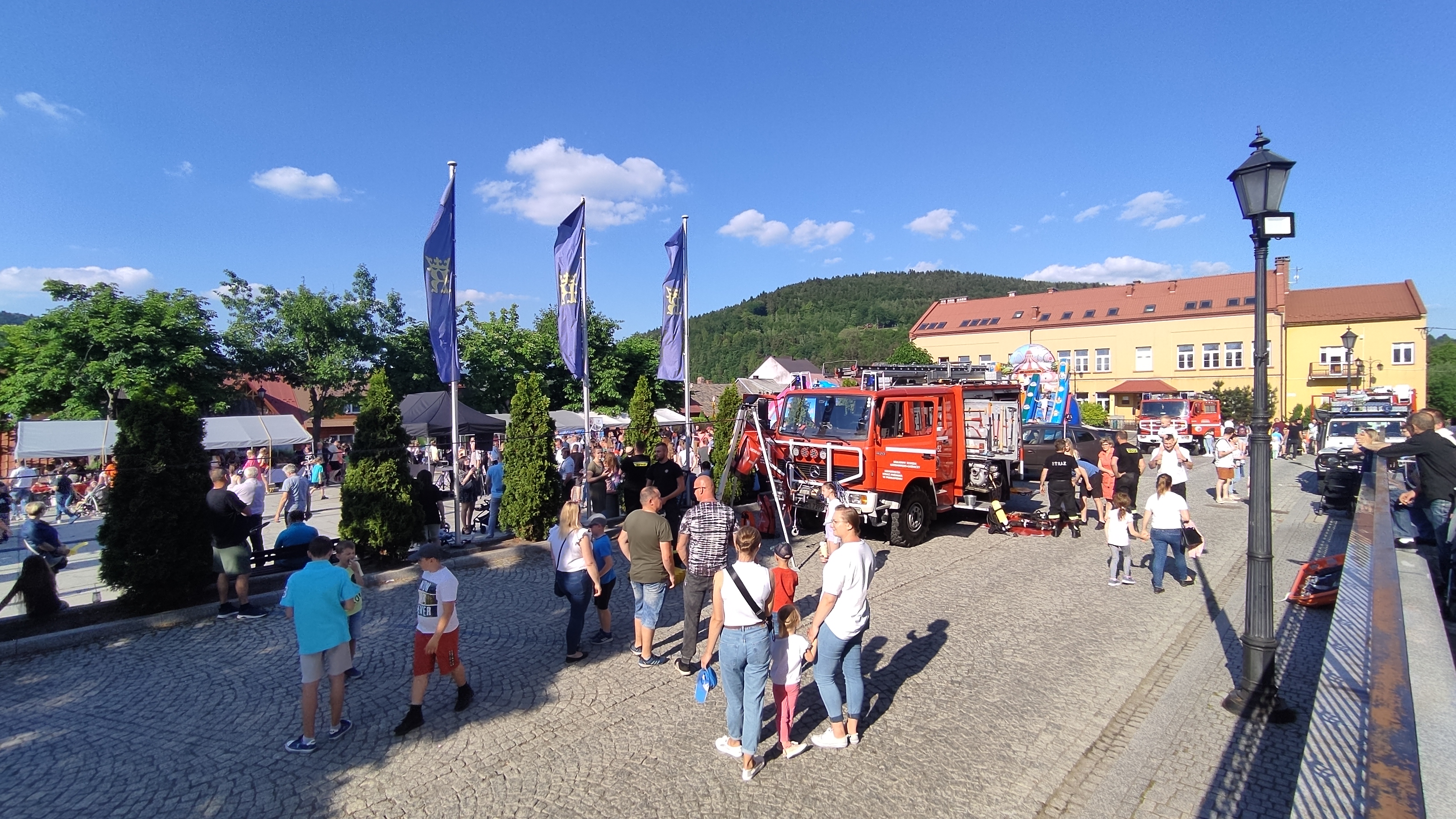 Po części artystycznej zaproszono Mieszkańców do korzystania z atrakcji na rynku. Dzieci mogły zjechać na linie przy obstawie OSP Podłopień, spróbować swoich sił przy stanowisku z hydronetką dzięki pomocy druhów OSP Zawadka oraz przećwiczyć działania ratownicze na fantomach wraz z druhami i druhnami OSP Tymbark.