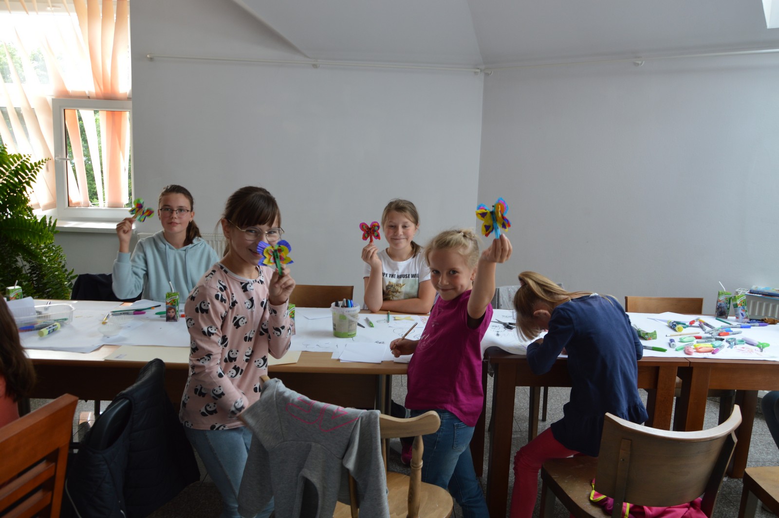 W programie znalazły się również zajęcia plastyczne, rozwijające kreatywność, wyobraźnię i twórcze umiejętności. Pod kierunkiem plastyczki, uczestnicy samodzielnie wykonywali prace przy wykorzystaniu ekologicznych materiałów. W efekcie zajęć powstawały: torebki z recyklingu, obrazki wykonane techniką metaloplastyki oraz dekoracyjne motyle.
