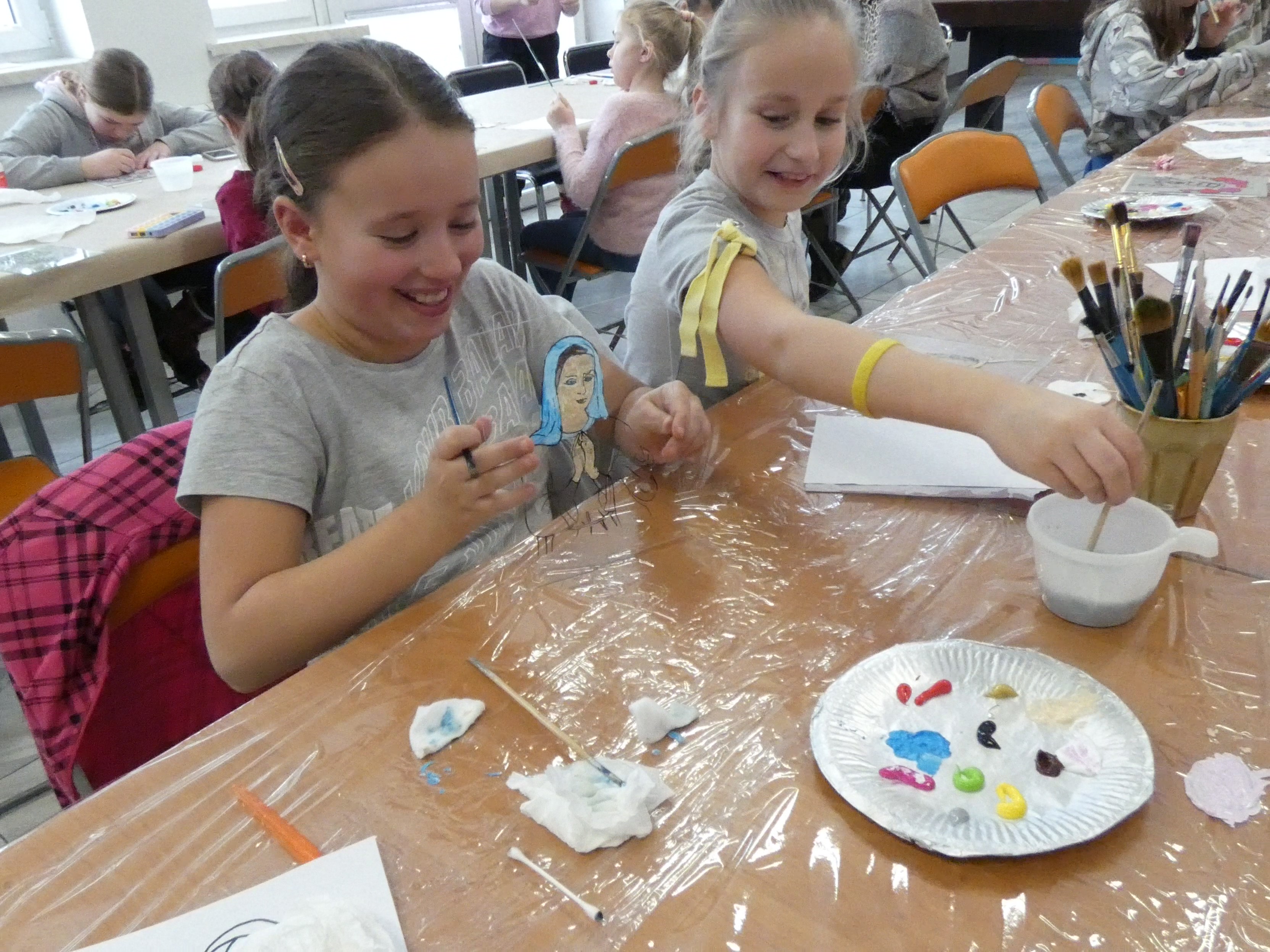 Świetlica w tym roku oferowała bogatą ofertę zajęć dla dzieci i młodzieży w różnym wieku. Dużym powodzeniem cieszyły się warsztaty ceramiczne i malowanie na szkle, prowadzone przez Panią Monikę Zielińską-Klimczak.